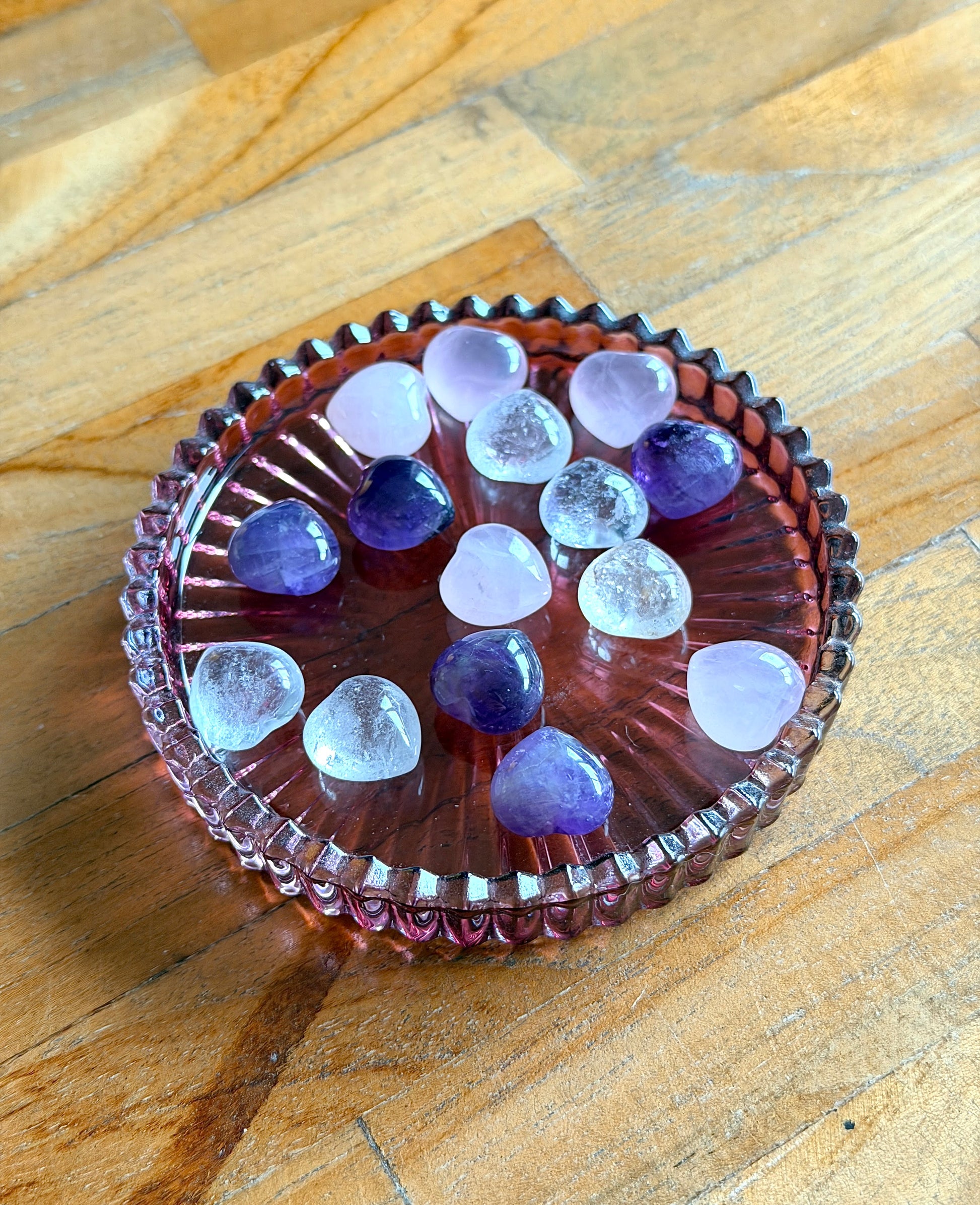 Gouden Driehoek edelstenen | Hart - rozenkwarts, amethist, bergkristal