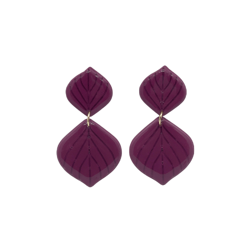 De donkerpaarse oorbellen 'Bella' vallen op door haar elegante, bladvormige design dat de zachtheid van de natuur vertaalt naar een krachtig statement. De subtiele lijnen geven diepte, terwijl de zachte kleuren elke look een rustige balans geven. Combineer Bella met een witte blouse of gebreide trui voor een moeiteloos, chique uitstraling.